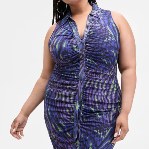 A body‑hugging piece with ombré shading and ruched detailing that celebrates curves with confidence and flair.